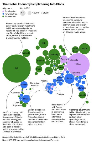 نشرت بلومبرج مؤخرا مقالا طويلا رائعا يبحث في كيفية قيام التوترات الجيوسياسية المتصاعدة بإعادة تشكيل التجارة والاستثمار العالميين. يجادل المقال بأن المستفيدين الرئيسيين هم البلدان التي تمكنت من جمع التجارة والاستثمار من خلال عدم الانحياز بشكل وثيق مع أي كتلة. وينسجم المقال مع مؤشرات على أن الولايات المتحدة تكافح من أجل حشد الدعم الكامل خارج مجموعتها الأساسية من حلفاء جي 7 حول مجموعة من بؤر التوتر الجيوسياسية. ا