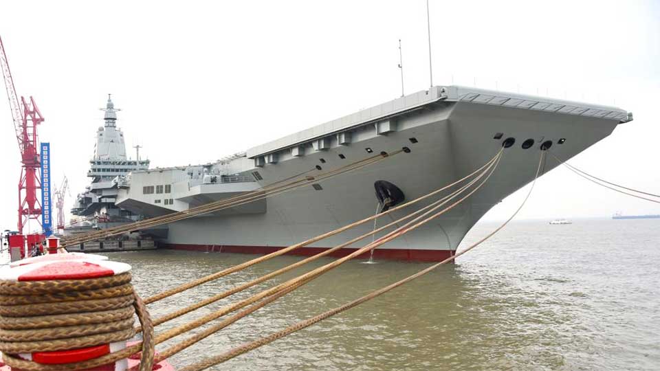 حاملة الطائرات الصينية الثالثة ، فوجيان ، تنطلق للتجارب البحرية الأولى من حوض شنغهاي جيانغنان لبناء السفن في شنغهاي بشرق الصين ، 1 مايو 2024. الصورة عبر شينخوا
