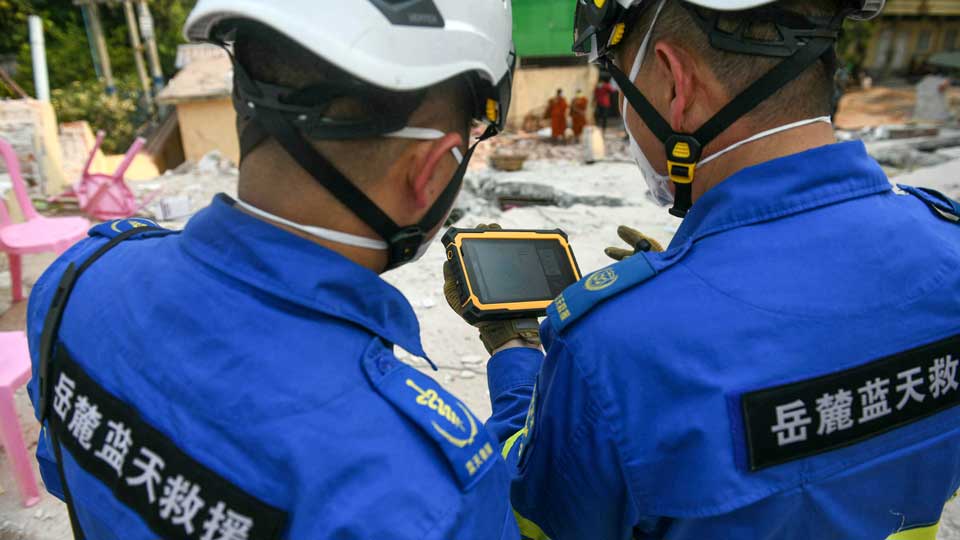 ووصل فريق إنقاذ آخر من مقاطعة يوننان الصينية إلى مركز التجارة في ميانمار، يانغون، يوم السبت، حسبما أفادت قناة تلفزيون الصين المركزي.
