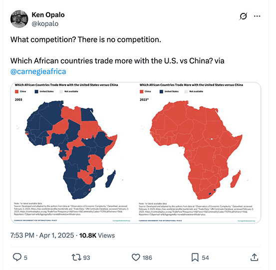 ما هي الدول الأفريقية التي تتاجر أكثر مع الولايات المتحدة مقابل الصين؟