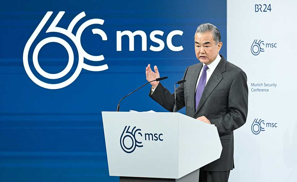 وقال وانغ في كلمته الرئيسية يوم السبت في مؤتمر ميونيخ للأمن "بغض النظر عن التغيرات في الوضع الدولي، فإن الصين كدولة كبرى مسؤولة ستحافظ دائما على استمرارية واستقرار سياساتها الرئيسية وستظل بحزم قوة للاستقرار في عالم مضطرب".