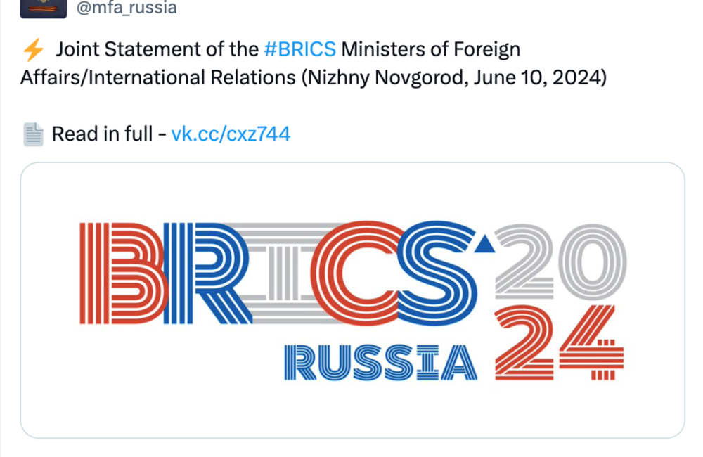 أصدر وزراء خارجية مجموعة بريكس، بما في ذلك الدول الأعضاء الجديدة التي انضمت إلى مجموعة القوى الناشئة العام الماضي، بيانا مشتركا عقب اجتماعهم في مدينة نوفغورود الروسية يوم الاثنين.