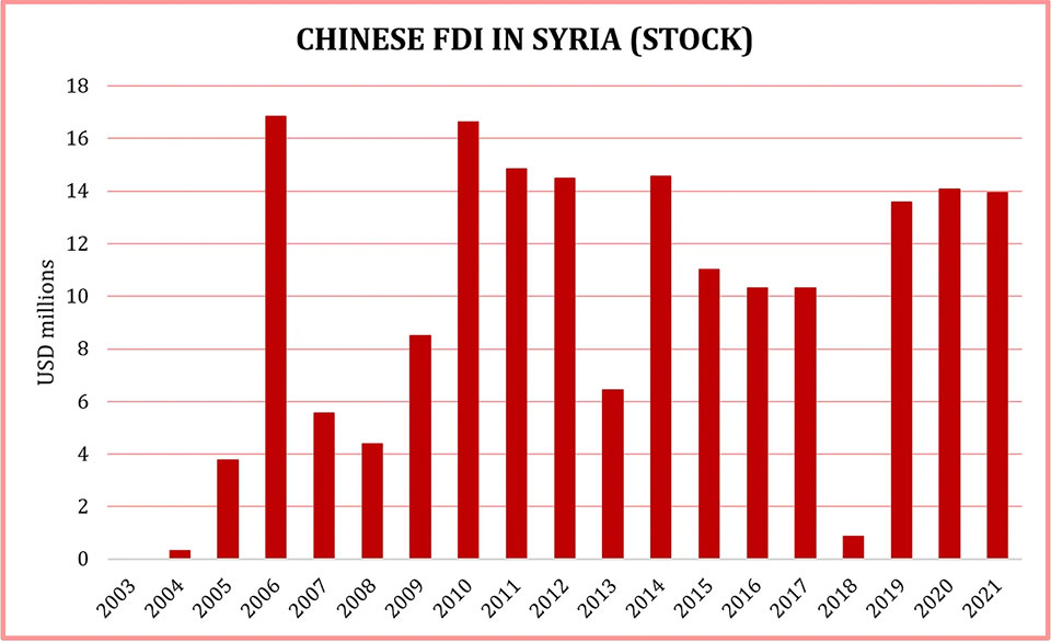 هذه التعليقات ليست مفاجئة. في الأعداد السابقة من المراقب الصيني-المتوسط ، ذكرنا في كثير من الأحيان أن المحللين الصينيين يرون أن هناك العديد من العقبات ، من العقوبات الأمريكية إلى افتقار سوريا للبنية التحتية اللوجستية والمالية الحديثة, التي تمنع أي تعاون اقتصادي ذي مغزى بين بكين ودمشق. في يوليو 2021 ، ذكر دينغ لونغ من جامعة شنغهاي للدراسات الدولية ما يلي: