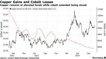 - الكوبالت: عززت مجموعة سي إم أو سي الصينية إنتاج الكوبالت من منجم تينكى فونجوروم الضخم في جمهورية الكونغو الديمقراطية بنسبة 170٪ حتى مع انخفاض الأسعار بالقرب من أدنى مستوياتها القياسية. ساعدت زيادة الإنتاج على دفع سي إم أو سي لتجاوز جلينكور السويسرية كأكبر شركة تعدين للكوبالت في العالم. (بلومبرج)