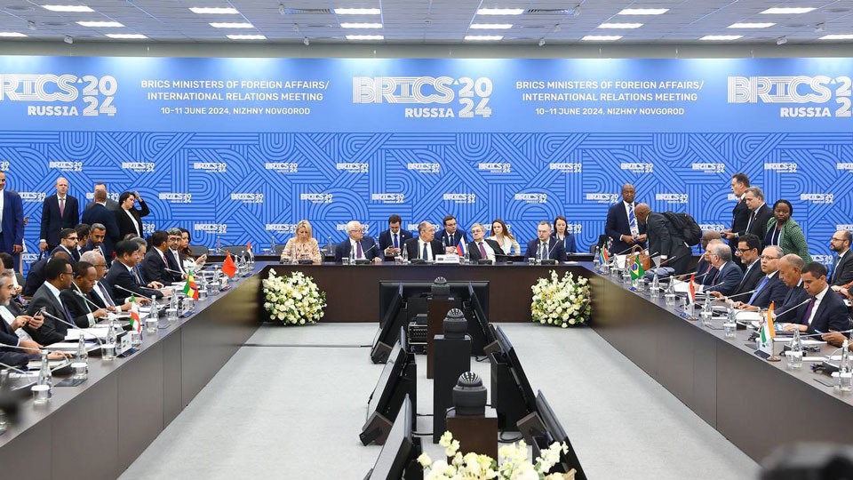 وسينضم إلى وزراء خارجية الدول العشر الأعضاء في بريكس زملاؤهم من نحو عشرين دولة نامية أخرى في اجتماع يستمر يومين في غرب روسيا يبدأ يوم الاثنين.