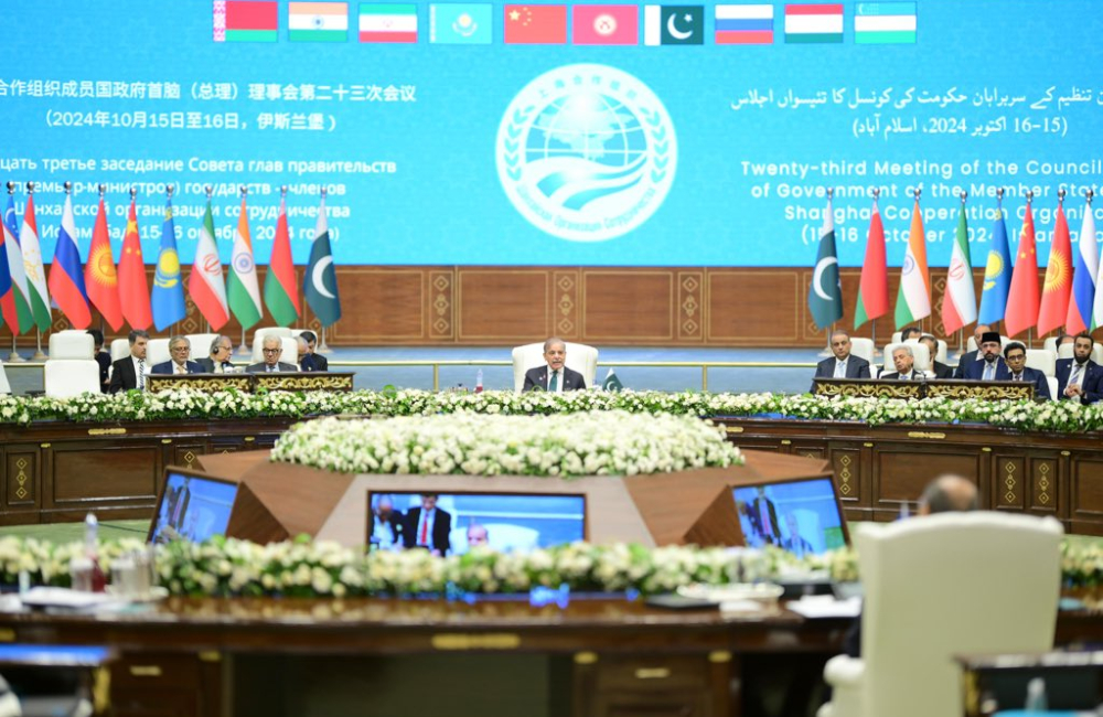 رئيس الوزراء الباكستاني شهباز شريف يترأس اجتماع رؤساء حكومات منظمة شانغهاي للتعاون في إسلام أباد. الصورة عبر صفحته الرسمية على تويتر.